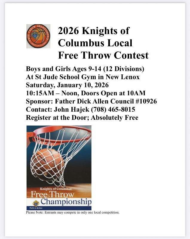 Knights of Columbus Free Throw Contest for Boys & Girls Ages 9-14 - Jan 10